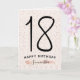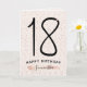 Trendy chic 18th birthday card features modern rose gold and blush pink background, number 18 and a name on the front. Personalize with your message inside.