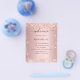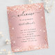 A modern, elegant budget wedding program, timeline. Blush pink background decorated with rose gold faux glitter dust. Personalize and add your names and wedding details. Black colored letters. If you have more text it's possible to reduce the line space.