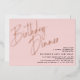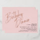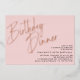 Elegant adult birthday invitations featuring "birthday dinner" text in real metallic foil. Modern text-only design with event details in the lower right corner. Minimal rose gold accents on a pastel pink background.