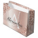 Blush Pink Rose Gold Metallic Glitter Monogrammed Large Gift Bag