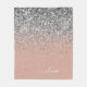 Blush Pink Rose Gold Silver Glitter Monogram Fleece Blanket
