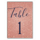 Blush Pink - Rose Gold and Navy Blue Sparkle and Glitter Script Modern and Elegant Table Number . The table number can be updated and changed on this dusty pink girly card.