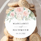 Blush Pink Roses Elegant Wedding Classic Round Sticker
