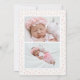 Elegant cute birth announcement template card featuring floral illustrations of light blush pink roses, lavender and green foliage on the front. The back reveals a pink polka dot background. There are 3 pictures of your newborn that can be added on this card (front and back). Perfect card to announce the arrival of your new baby with his/her birth stats. Great for both baby boy and girl. Perfect for summer and spring seasons!