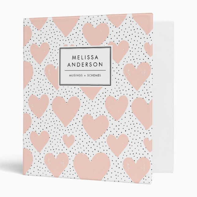 Organize your taxes, recipes, notes and so much more with this customizable floral binder. It features blush pink hearts and black confetti dots pattern. Personalize by adding your name and a short phrase. This pretty hearts binder will be perfect as a personalized gift.