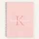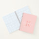 Designed with pastel pink on both sides and the front of notebook has large dark dusty rose monogram initial and elegant calligraphy script lettering in white for personalized name. CLICK PERSONALIZE TEMPLATE OPTION AND ENTER NAME AND MONOGRAM.