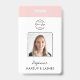Blush Pink Script Logo Photo Makeup Employee ID Badge