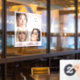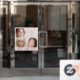 Makeup studio window cling with blush pink black script typography font. Just add your logo here with 3 photo makeup business - add your slogan or name or social media handle.