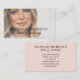 Blush Pink Black and White Script Photo Hair and Makeup Business Card. Change opacity of the photo in your design edit tool.