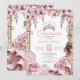 Blush Pink Silver Tiara Floral Quinceañera Invitation