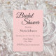 Simple style, bridal shower invitation that features a trendy, blush pink colour background along with the future bride's name and party event time and location, contact, etc., printed in white, stylized lettering. Personalize your invitation by replacing text with your own bridal shower information. Select your invitation paper style and quantity.