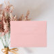 Blush pink coloured mailing envelope for your wedding invitations and features your name and address printed on back flap in a modern script style. Personalize your envelope by editing and replacing name and address with your own. Edit further to change font style or colour. Select your envelope size that fits your invitation.