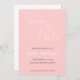 Simple style wedding save-the-date invitations that feature black, stylized script on a trendy, blush pink colour background. Edit and replace names, date, and location with your own. Select your invitation size and paper style.