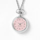 This pretty necklace watch features a Blush Pink solid colour face and the ability to add a custom name. Click "Personalize this Template" to easily change or remove the featured sample name.