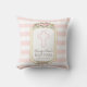Blush Pink Stripes Floral Gold Baptism Monogram Throw Pillow