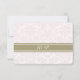 Wedding RSVP cards in elegant and contemporary light pastel blush pink, sand taupe brown and white classic and chic floral vintage damask pattern. Customizable with your wedding details, available in many matching wedding products.
