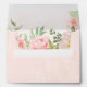 An elegant floral envelope featuring blush pink watercolor peonies and roses with modern handwritten calligraphy.