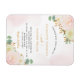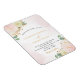A white background with soft blush pink and rose gold watercolor brush strokes. background. Decorated with watercolored flowers, florals pink roses, white orchids and a yellow gerbera, eucalyptus greenery and faux gold sprigs. Personalize and add your names and wedding details. Black and golden coloured letters.