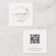 Blush Pink Watercolor Gold Circle Floral QR Code Square Business Card
