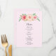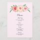 Wedding dinner menu in light pink vintage watercolor wildflowers.