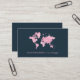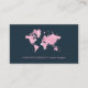 Blush Pink Watercolor World Map on Navy Blue Business Card