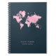 Blush Pink Watercolor World Map on Navy Blue Notebook