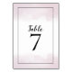 Modern Black typography with the word Table above and the number in a larger size beneath, with a single line border around the edge and blush pink watercolor wash for the backdrop running along the top and bottom with a white area in the middle. The same wash partially covers the back. Easily personalise the numbers for each table. You can also change the text and border colour if you wish via the Click to Customize Further option.