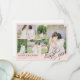Beautiful wedding thank you card in a lovely shade of blush pink featuring a photo collage to which you can add five of your wedding photos. Thank you is written in a gorgeous calligraphy script in the bottom right corner, with loops. Add your names and wedding date and location in an elegant font. The back is lined so you can write a personal message by hand.