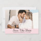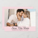 Elegant blush wedding photo save the date cards featuring an engagement photo and a script on a blush pink background. Personalized blush pink wedding save the date cards. Customizable blush pink wedding save the date cards. Script wedding save the date cards.