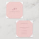 Blush Pink White Modern Monogram Trendy Template Square Business Card
