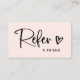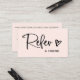 These trendy and chic blush pink business referral cards feature modern, handwritten black script and a cute scribbled heart for a casual, simple look. The back has several fields that you can customize with your retail shop or company information.
