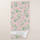 Chic Blush Pink with Watercolor Sage Green Leaves Pattern with Family Name Bath Towel.