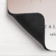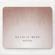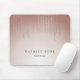 Chic personalized mousepad displays your name, business name or choice of custom text in classic black lettering on a blush pink ombre background adorned with strands of faux rose gold foil string lights.