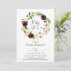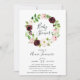 D'élégantes invitations florales à la douche pour bébé comportent une couronne de fleurs d'aquarelle en rose vif, marsala bordeaux et ivoire avec feuillage botanique vert et feuilles, encerclant "baby shower" en lettres manuscrites chic. Personnalisez avec vos détails de baby shower sous. Conçu pour correspondre à notre collection de papeterie d'événements Blush Romance.
