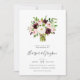 D'élégantes invitations à des mariages fleuris présentent un bouquet de fleurs d'aquarelle dans des tons chics de rose roux, de marsala bordeaux et d'ivoire, avec des feuilles et des tiges verts vibrants. Personnalisez avec vos détails mariages sous un mélange chic de caractères de calligraphie de bloc, serif et manuscrits.