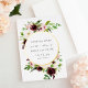 Un mariage élégant sauvez le design de date avec vos détails mariages centrés dans un cercle encadré de feuille d'or, avec une bordure de fleurs d'aquarelle luxuriante et de feuillage en bleu, ivoire, bordeaux et vert sur un arrière - plan blanc immaculé.