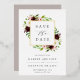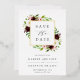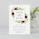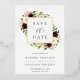 Our Blush Romance wedding save the date frames the words "save the date" with an elegant border of burgundy marsala, blush pink and ivory flowers with lush green foliage with gold foil accents. Personalize with your names, wedding date, and location beneath, and add additional details to the back.