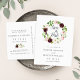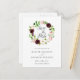 Elegant watercolor floral save the date postcards feature "save the date" in chic calligraphy inside a wreath of watercolor flowers in burgundy marsala and blush pink with lush green leaves and foliage.
