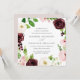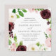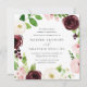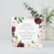 Our square shaped Blush Romance wedding invitation surrounds your wedding day details with a wreath of watercolor blossoms in ivory, burgundy marsala and blush pink, accented with lush green botanical leaves and foliage.