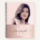A faux rose gold, pink metallic looking background. Personalize and add your own photo, a name, monogram letter and a year 2021. The name is written in dark rose gold with a large modern hand lettered style script with swashes. Perfect for school, work or organizing your personal/family life. To keep the swashes only delete the sample name, leave the spaces or emoji's in front and after the name