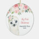 Watercolor Floral Blush Rose Snow Seal Baby 1st First Christmas Ceramic Ornament.