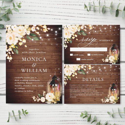 Wood, Blush Roses, Lantern and LightsDesigned by Ellen L