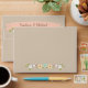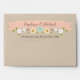 Add your names and address to this pretty custom rustic floral boho style envelope with a khaki sand coloured background and printed blush peachy pink ribbon look banner with a white cherry blossom branch, sunflower, brown eyed susan and aqua teal blue wild rose tulip and posy laurel wreath design. These envelopes perfectly compliment a bohemian chic, country western, farm, farmhouse, barn, barnyard or outdoor garden themed special occasion like a wedding, bridal or couples shower, engagement party, rehearsal dinner or anniversary celebration. Artwork and design © Chrissy H. Studios, LLC. All rights reserved.