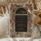 Invite your loved ones to celebrate your union with this exquisite Islamic Wedding Invitation, featuring a sophisticated Art Nouveau design. The invitation boasts a warm blush background with sage green and gold foil accents that exude elegance and charm. The front cover is graced with a stylized tree of life motif, symbolizing growth and unity, flanked by laurel leaves and monogrammed with the couple's initials 'A' and 'S' in a tasteful gold script. Turning to the back, your guests will be greeted by a beautifully detailed frame with lush florals in shades of blush, sage, and cream, elegantly wrapping the essential details of your special day. The intricate gold detailing and traditional Arabic calligraphy merge to create a seamless blend of cultural heritage and classic beauty, perfect for a wedding that celebrates love, tradition, and artistry.