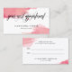 A chic and eye-catching makeup appointment card with "your next appointment" written in a gorgeous black calligraphy script against a white background splashed with watercolor of different hues of pink.
