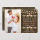 Add your favourite engagement photo or picture to this rustic string of lights save the date card that is part of a fall floral rustic string of lights wedding invitation set in blush, coral, green, brown, white, yellow and brown hues with a beautiful wood look background reminiscent of a wooden fence and or barrel. An autumnal laurel wreath composed of acorns, berries, sunflowers, tulip rose and white blossoms sit on a leafy branch. The words Save the Date is flanked by two coral hearts. Perfect accompaniment for an outdoor fall, country, farmhouse, barnyard or rural chic themed wedding, bridal shower, anniversary party or couples shower. The back can be customized with the happy couple's proposal story or special message for their guests. The charming twinkle and fairy lights with a bokeh effect look bright, warm and inviting. Artwork © Chrissy H. Studios, LLC. All rights reserved.