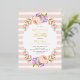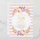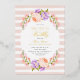 Affordable custom printed bridesmaids brunch and bubbly invitations personalized with your event details. This pretty botanical design features a watercolor frame of peach and lavender flowers on a blush striped background. Use the design tools to customize the text, edit the fonts and colours or add your own photos to create an elegant spring floral bridal party brunch invitation.