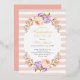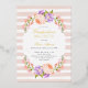 Affordable custom printed graduation brunch party invitations personalized with your event details. This pretty botanical design features a watercolor frame of peach and lavender flowers on a blush striped background. Use the design tools to customize the text, edit the fonts and colours or add your own photos to create an elegant spring floral graduation invitation.