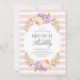 Affordable custom printed Mother's Day brunch and bubbly invitations personalized with your event details. This pretty botanical design features a watercolor frame of peach and lavender flowers on a blush striped background. Use the design tools to customize the text, edit the fonts and colours or add your own photos to create an elegant spring floral brunch party invitation.