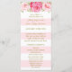 Programme de mariage personnalisé en rose pastel clair et rayures blanches motif avec fleurs d'aquarelle rose vintage. Customisez ces cartes de cérémonie avec votre propre texte.